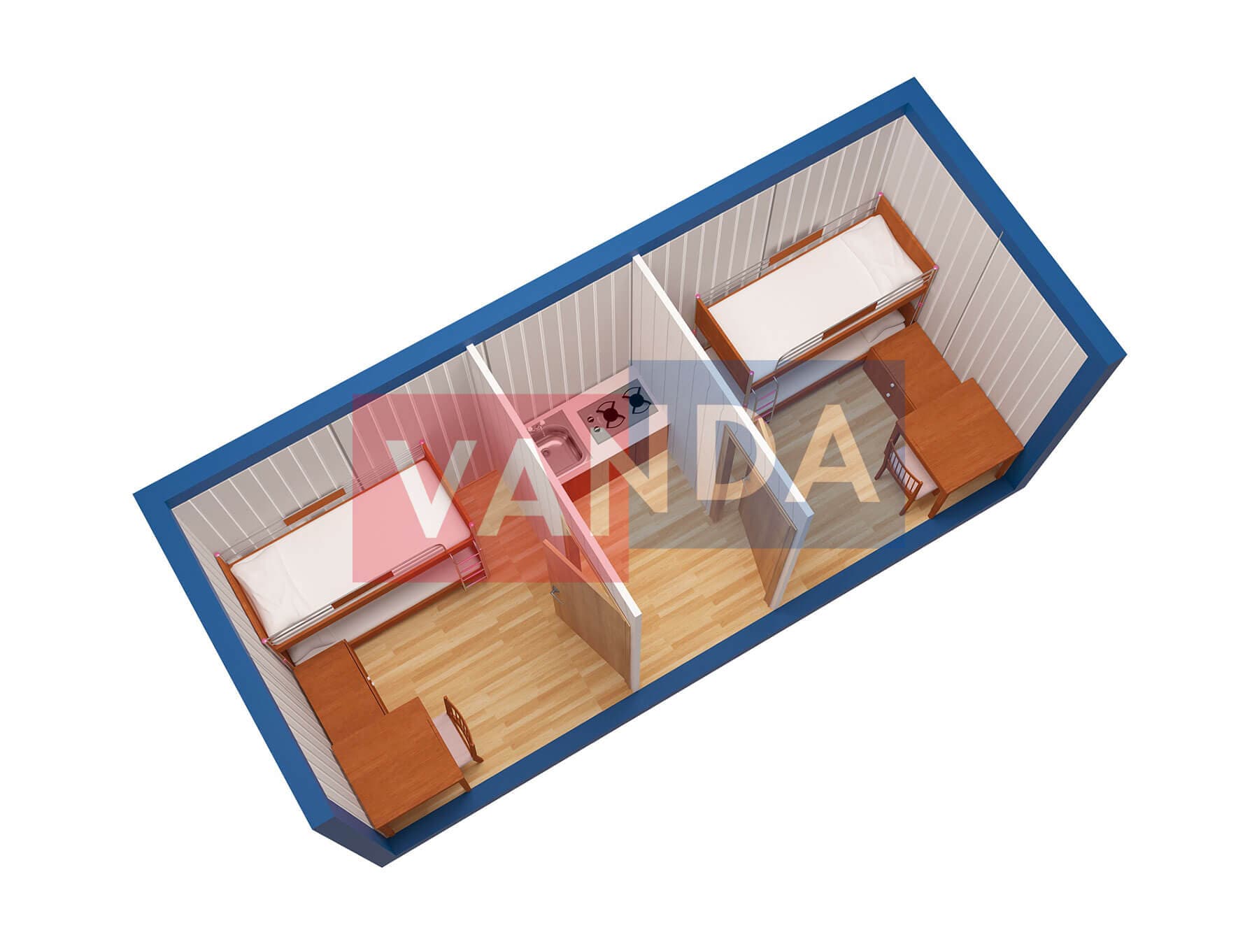 Металлическая бытовка с кухней в тамбуре 5,85 x 2,4 - Вагонка ПВХ
